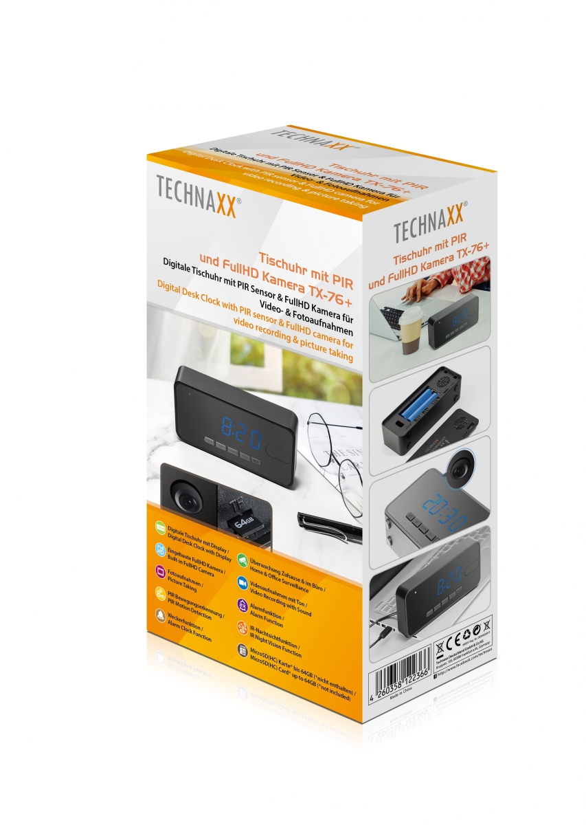 Product: 4800 - Technaxx Desk Clock with PIR and FHD Camera TX-76+