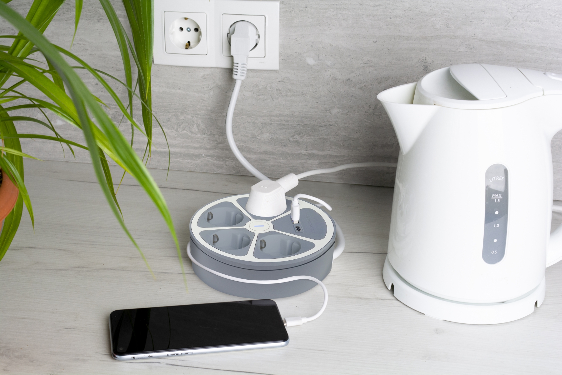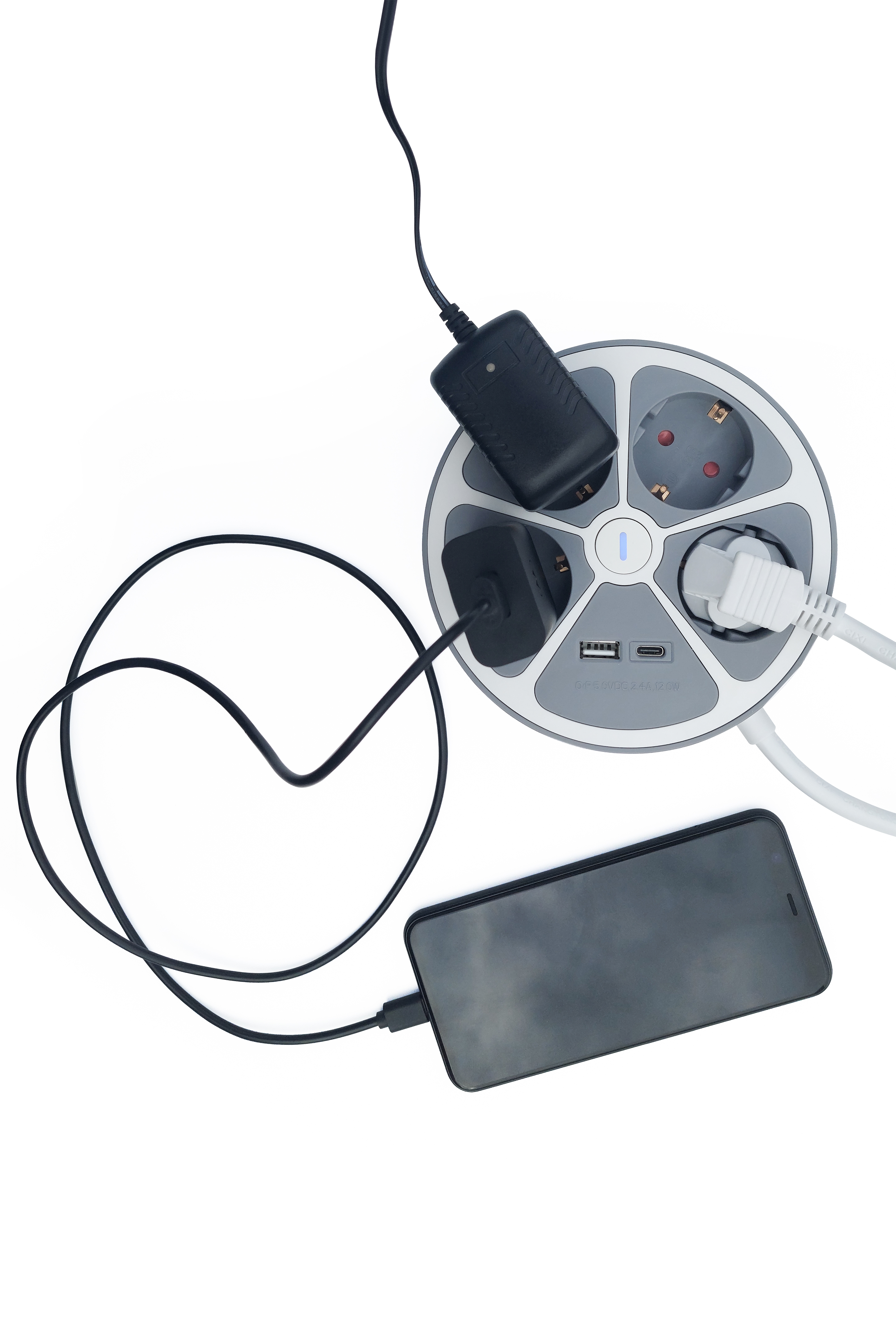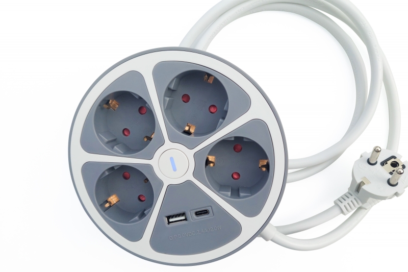 Product: 5100 - Technaxx Power Strip Round 4 x 230V & 2 USB Ports TX-262