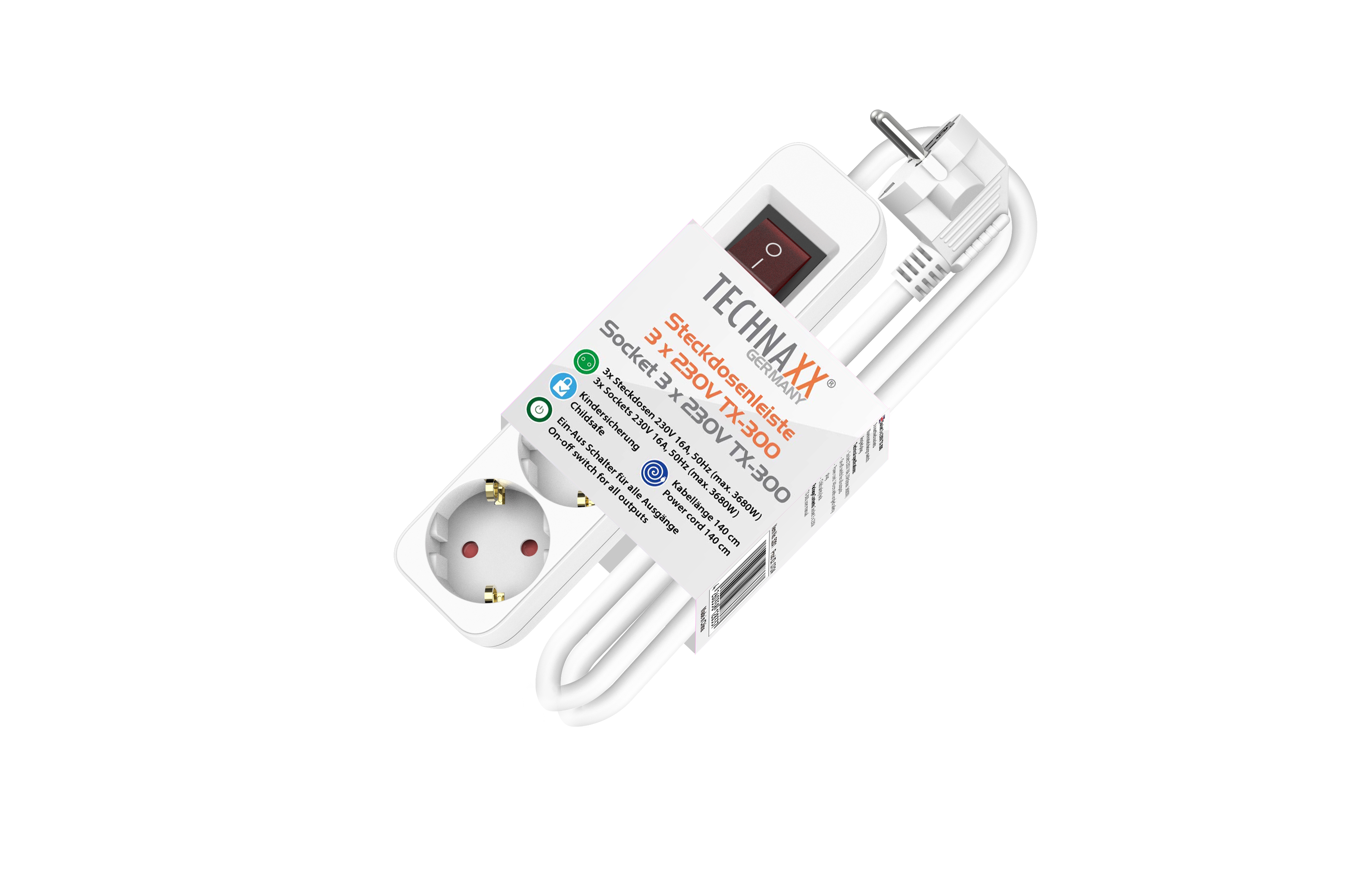 Product: 5201 - Technaxx Power Strip Round 4 x 230V & 2 USB Ports TX-262
